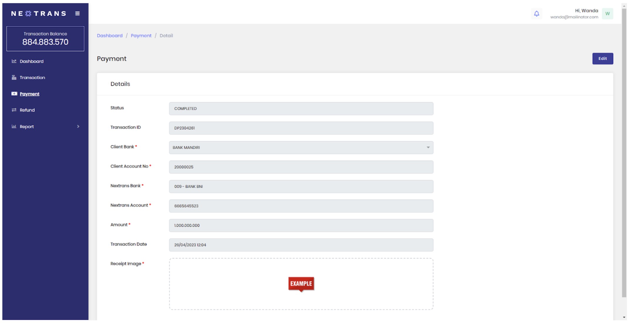 Untuk meningkatkan keamanan dan kenyaman bertransaksi, anda akan mendapatkan akses yang didesain secara khusus untuk bisnis anda untuk mengeksekusi transaksi dan memantau transaksi bisnis anda melalui Dashboard Nextrans. Melalui akses khusus ini, hanya anda yang dapat mengakses informasi terkait bisnis anda. Fitur - fitur yang disediakan Nextrans:-