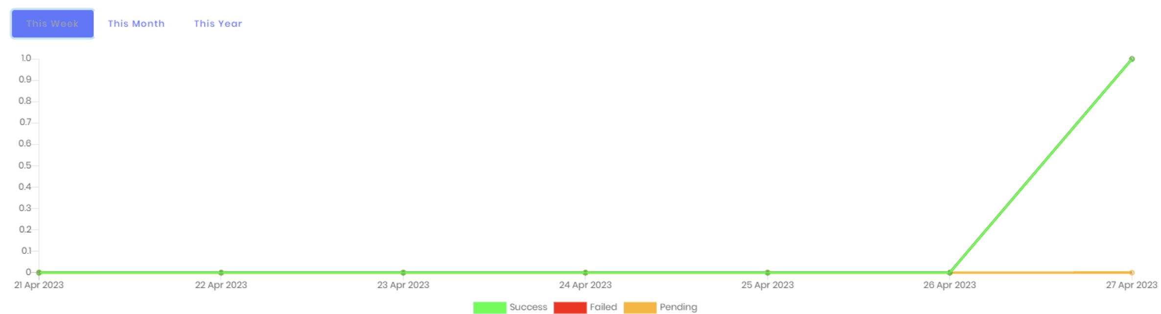 Fitur ini menampilkan grafik transaksi yang dapat ditampilkan berdasarkan rentang waktu per minggu, per bulan dan per tahun.