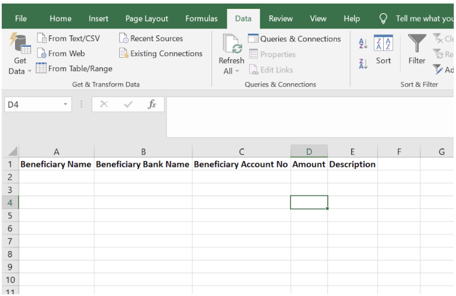 Masukkan informasi transaksi sesuai dengan template yang sudah disediakan, anda dapat mengirimkan dana ke lebih dari satu bank tujuan menggunakan template yang sama.